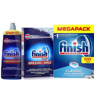 combo viên rửa chén Finish 150 viên + Muối làm mềm nước 1,2kg + nước làm bóng 400ml