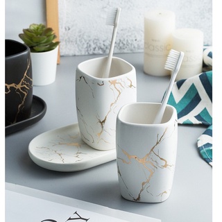 Combo Cốc Đánh Răng Nhà Tắm Chất liệu Gốm Sứ Vân Cẩm Đá Thạch Cao Cấp