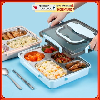Hộp Cơm Văn Phòng Inox 4 ngănSHOPEMTRANG07Khay Cơm Giữ Nhiệt, Dễ Vệ Sinh Và Tiện Lợi, Hộp Đựng cơm có nhiều ngăn