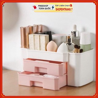 Kệ nhựa mỹ phẩm 2 tầngSHOPEMTRANG7Hộp để mỹ phẩm có ngăn kéo tiện lợi, Kệ mỹ phẩm đa năng