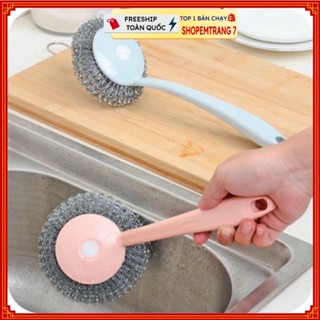 Cọ xoong có tay cầm đa năngSHOPEMTRANG7Dụng cụ cọ nồi, chảo inox có tay cầm, Bùi nhùi, búi sắt cọ xoong không rỉ