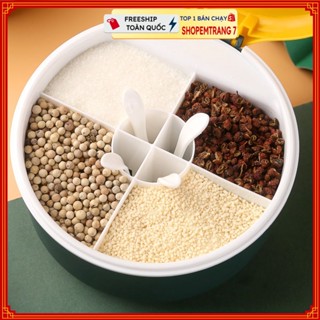Hộp Đựng Gia Vị 4 Ngăn SHOPEMTRANG07Hũ Dựng Tiêu, Gia Vị Hình Tròn Nắp Đậy Nhựa ABS Có Kèm Muỗng