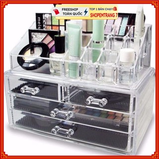 Kệ Đựng Mỹ Phẩm Cao Cấp 4 TầngSHOPEMTRANG07Khay Đựng Son, Mỹ Phẩm Có Ngăn Kéo Nhiều Tầng, Kệ Mỹ Phẩm Nhựa Trong Suốt