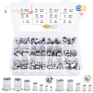 YOLA Bộ 180 Đai Ốc Đinh Tán Bằng Thép Không Gỉ 304 Đầu Dẹt Chống Ăn Mòn M3 M4 M5 M6 M8 M10