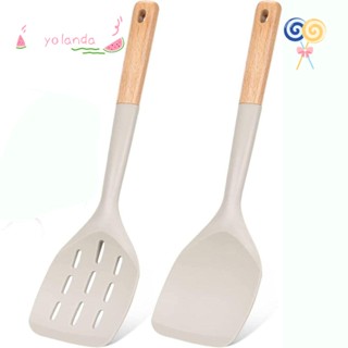 Bộ 2 Dụng Cụ Nấu Ăn Bằng Silicone Tay Cầm Gỗ Dành Cho Nhà Bếp