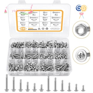 Bộ 400 Ốc Vít Đầu Lục Giác Chữ Thập / Đầu Tròn / Chữ Thập Chuyên Dụng Sửa Chữa #8 Vít Tự Cắt Bằng Thép Không Gỉ 410 Cho Xây Dựng
