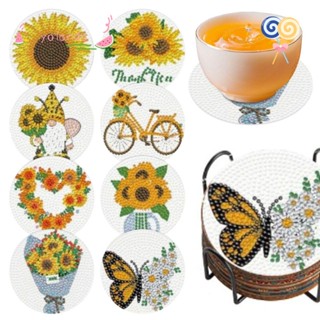 YOLA Bộ 8 Đế Lót Ly Vẽ Hoa Hướng Dương 5d Cho Người Mới Bắt Đầu
