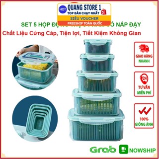 Sét 5 Hộp Đựng Thực Phẩm Có Nắp Đậy Cao Cấp - Khay Nhựa Để Tủ Lạnh Kèm Rổ Ráo Nước Bảo Quản Thức Ăn Tiện Dụng .