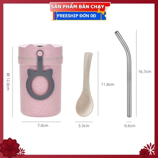 Cốc Đựng Canh + Ống Hút + Thìa Ăn Cơm Trưa Văn Phòng - Chất Liệu Lúa Mạch An Toàn
