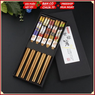 Combo Set 5 Đôi Đũa Gỗ Phong Cách Nhật Bản Không Chất Bảo Quản