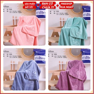 Set 2 khăn tắm chính hãng Hilton cao cấp, khăn mặt vải sợi bông siêu mềm mịn thấm hút nhanh kích thước 140x70cm