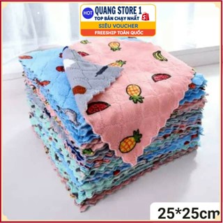 PVN24545 Set 10 khăn lau đa năng 2 mặt hình họa tiết hoa quả, siêu thấm hút lau bếp, lau chén đĩa, lau bàn ghế tiện lợi