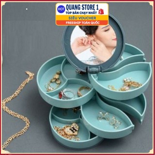 PVN25125 Kệ, Hộp đựng trang sức bông tai 4 tầng xoay 360 có gương T2