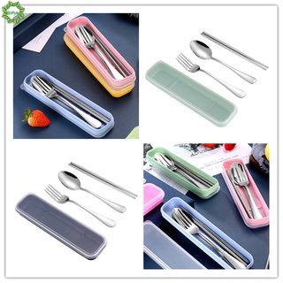 Bộ 3 món muỗng nĩa đũa ăn bằng thép không gỉ có hộp đựng