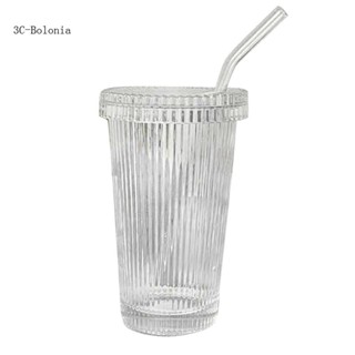 Cốc Thủy Tinh Uống Rượu / Nước Ép Có Ống Hút Họa Tiết Kẻ Sọc Đơn Giản
