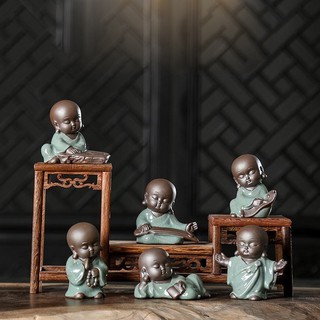 Tượng Chú Tiểu Gốm Xanh Cầm Kì Thi Họa, Cầu Phúc và Hoan Hỉ