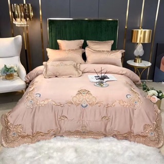 Set chăn ga gối Lụa silk THÊU HOÀNG GIA CAO CẤP / Set 4 món