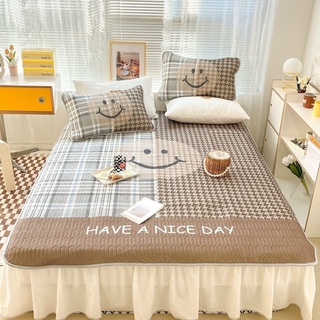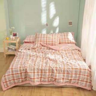 Bộ Chăn Ga Gối Cotton Đũi Kẻ Muji - Chăn Hè Chần Bông Mỏng Kích Thước 2mx2m3 Full Set 4 Món
