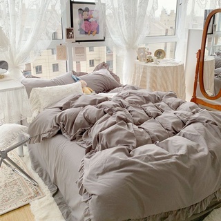Bộ chăn ga gối 4 món côtn đũi dúm sang trọng cotton mềm mại tone màu pastel Hàn Quốc SHOP VŨ THỊ THƠM