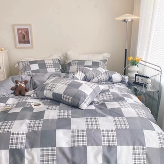 Bộ chăn ga gối cotton organic Kẻ caro ghi SHOP vũ thị thơm