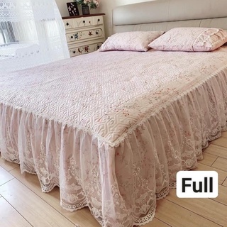 Bộ Ga Gối Phủ Cotton Trần Bông 3 Lớp - Ga Phủ Viền Bèo Đính Ren Công Chúa Hàng Nhập Khẩu