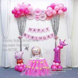 Set trang trí sinh nhật cho bé tuổi heo, set sinh nhật cho bé 1 tuổi tặng kèm bơm và băng dính