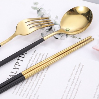 Bộ Thìa Đũa Dĩa inox 304 Mạ Vàng Cao Cấp – Tăng Kèm Hộp Đựng Sang Trọng