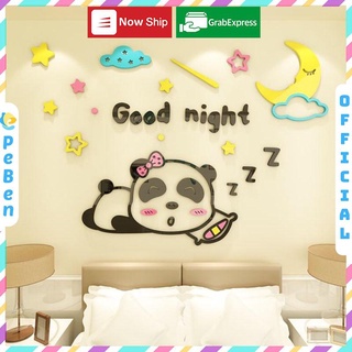 Tranh dán tường mica 3d decor khổ lớn gấu trúc ngủ ngon trang trí phòng cho bé, tranh mica dán nổi Nhiều Size - EPeBen