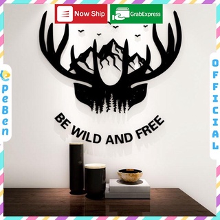 Tranh dán tường mica 3d decor khổ lớn sừng hươu phong cách bắc âu hiện đại Nhiều Size - EPeBen