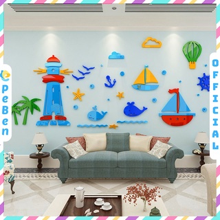 Tranh dán tường mica 3d decor khổ lớn ngọn hải đăng trang trí mầm non, phòng cho bé Nhiều Size - EPeBen