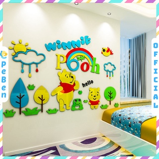 Tranh dán tường mica 3d decor khổ lớn winnie the pooh dưới mưa trang trí mầm non, phòng cho bé Nhiều Size - EPeBen
