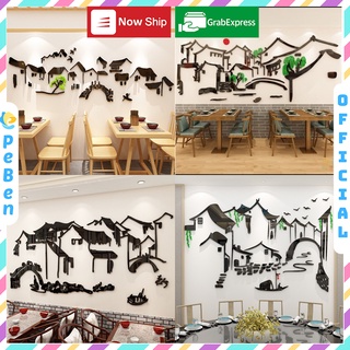 Tranh dán tường mica 3d decor khổ lớn thiền thư pháp m quốc,trang trí cửa hàng, quán trà Nhiều Size - EPeBen