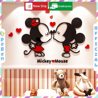 Tranh dán tường mica 3d decor khổ lớn mickey & mouse kiss trang trí mầm non, phòng cho bé Nhiều Size - EPeBen