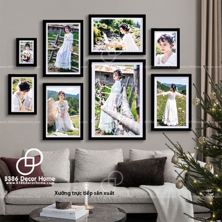 Bộ 8 khung ảnh treo tường trang trí giá rẻ siêu đẹp bằng gỗ thông thật