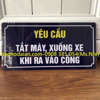 Biển báo yêu cầu tắt máy xuống xe khi ra vào cổng chất liệu mica KT15x30