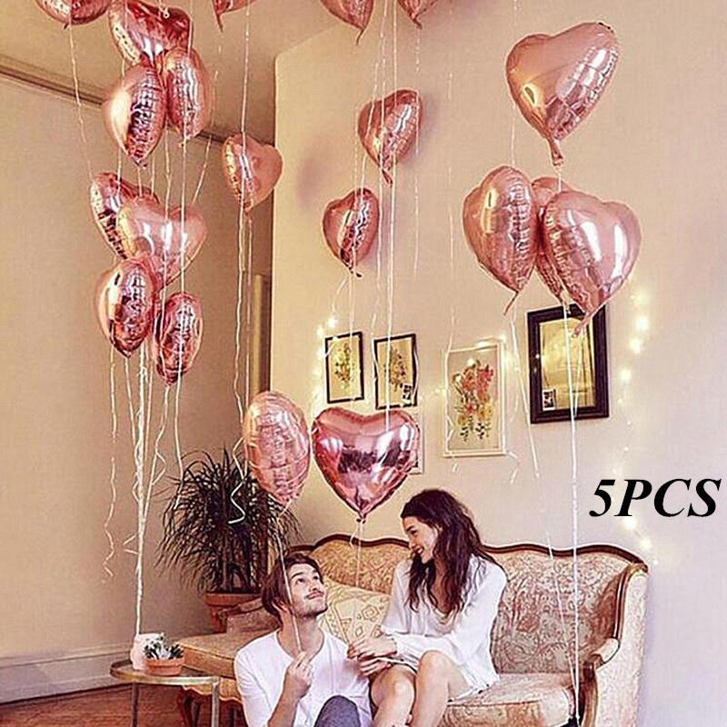 Bộ 5 quả bong bóng hình ngôi sao 18 inch hình trái tim dùng trang trí tiệc cưới /sinh nhật