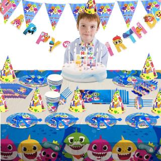 Set dụng cụ bàn ăn trang trí tiệc sinh nhật in hình cá mập
