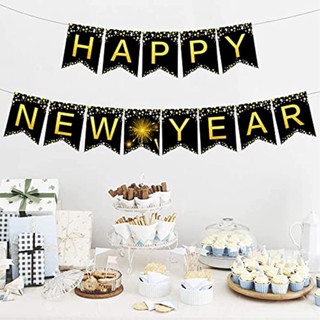 Dây Cờ Chữ Happy New Year 2023 Màu Vàng Đen Trang Trí Tiệc