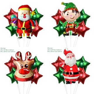 Set 5 bong bóng bơm hơi nhôm kiểu ông già noel người tuyết hoạt hình trang trí Giáng sinh