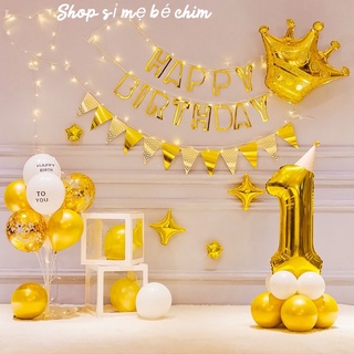 Set bóng trang trí sinh nhật tông vàn BK022 ĐỦ PHỤ KIỆN - Tặng kèm dây đèn led 5 mét