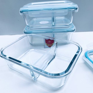 Hộp thủy tinh 2 ngăn 1000ml- Hộp thủy tinh chia ngăn tiện dụng Hàng đẹp