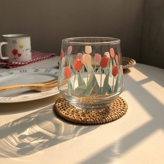 Cốc Ly Thủy Tinh Tulip Uống Trà Sữa và Trang Trí In Hình Hoa Tulip