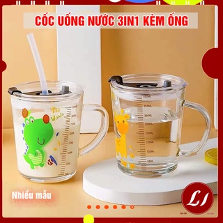 Cốc uống nước kèm ống hút có chia vạch tiện lợi (350ml) loại thủy tinh