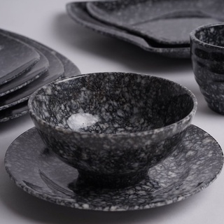 1 dĩa tròn lót chén,đựng thức ăn nhựa Melamine vân đá đen Size 15.3 x 1.8 cm 【dĩa vân đá】