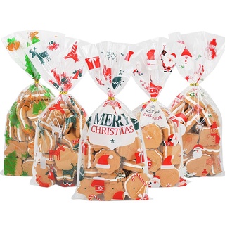 Set 50 Túi Nhựa PVC Trong Suốt Đựng Bánh Kẹo In Họa Tiết Giáng Sinh
