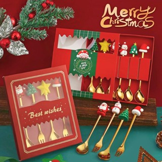 Set 4 / 6 Muỗng Nĩa Hình Ông Già Noel Dễ Thương Kèm Hộp Đựng