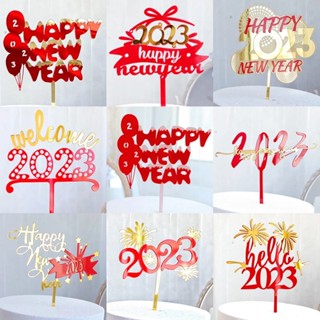 Que Cắm Trang Trí Bánh Chúc Mừng Năm Mới 2023 Bằng Acrylic Nhiều Màu