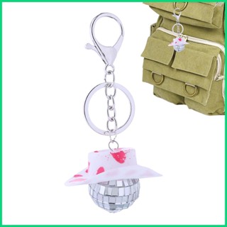 Móc Khóa Gắn Gương Chiếu Hậu Disco Mini Hình Nón Cao Bồi Lấp Lánh Trang Trí Túi Xách