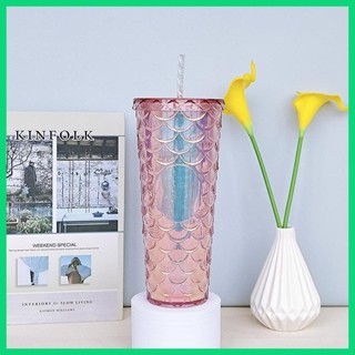 Cốc Nhựa Hai Lớp Cách Nhiệt Họa Tiết Vảy Cá Thời Trang Sáng Tạo 700ml
