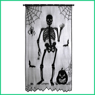 Rèm Cửa Sổ Ren Đen Hình Bộ Xương Người Dơi Bay Cho Halloween